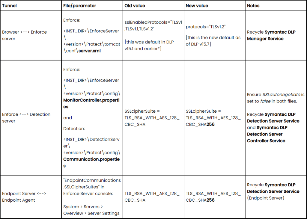 Bu değişiklikleri yaptıktan sonra, detection ve enforce sunucularının her birinde aşağıdaki parametreler girilerek TLS 1.0 ve 1.1’i devre dışı bırakmanızı öneririm.