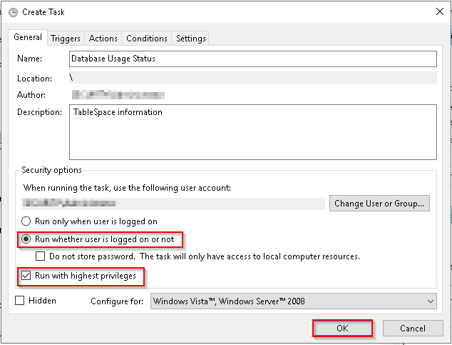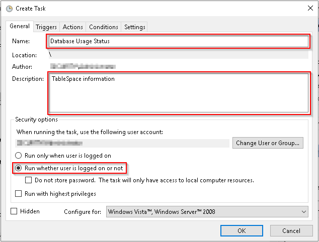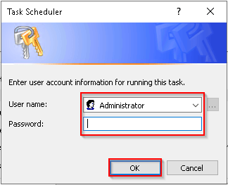 To ensure that our task can run even when no user is logged on to the computer, enter your username and password.