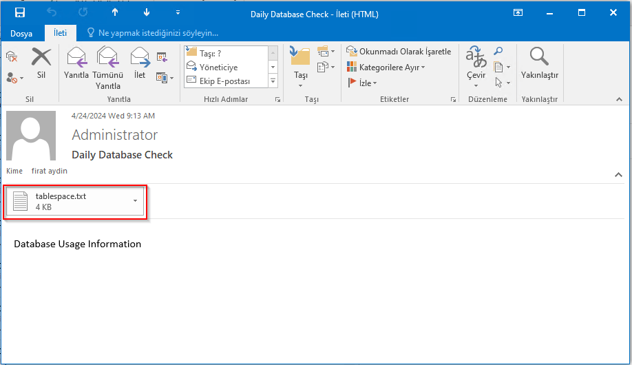 You can find the steps to send your database usage information to your email inbox daily, weekly, or monthly before your Tablespace area becomes full.