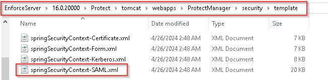 3- Copy and rename the file “springSecurityContext-saml.xml” you selected into the [your install directory]/Protect/tomcat/webapps/ProtectManager/WEB-INF/ folder.