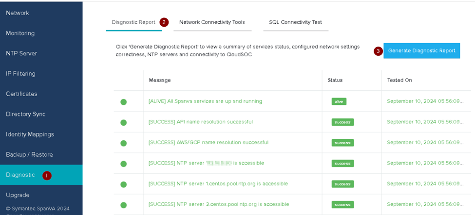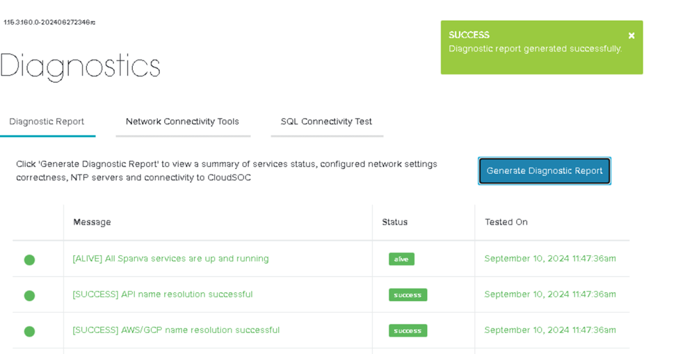 2-Confirm that the current SpanVA Diagnostics are green status: