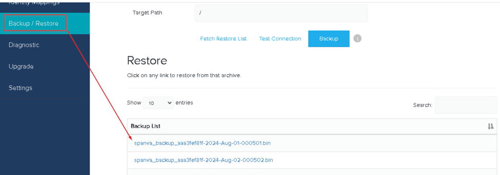 d- Enter the directory Target Path where SpanVA places the backup files.
